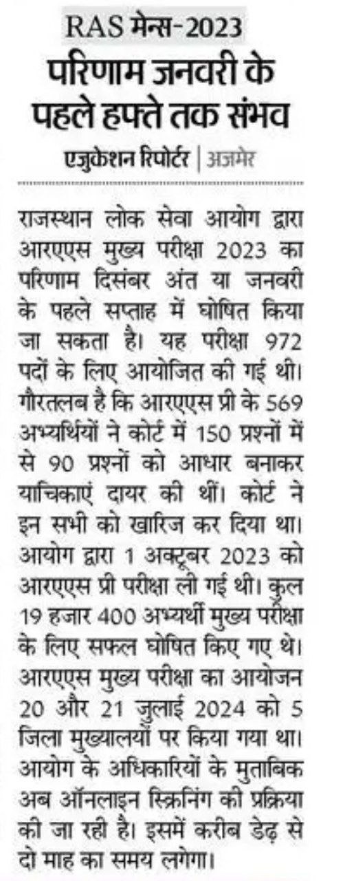 RAS Mains-2023 Result Info