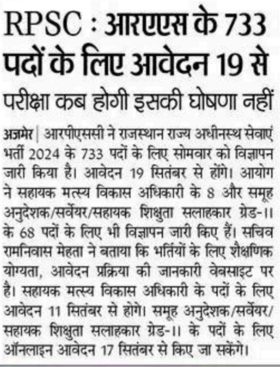 Application for 733 posts of RPSC RAS from 19th